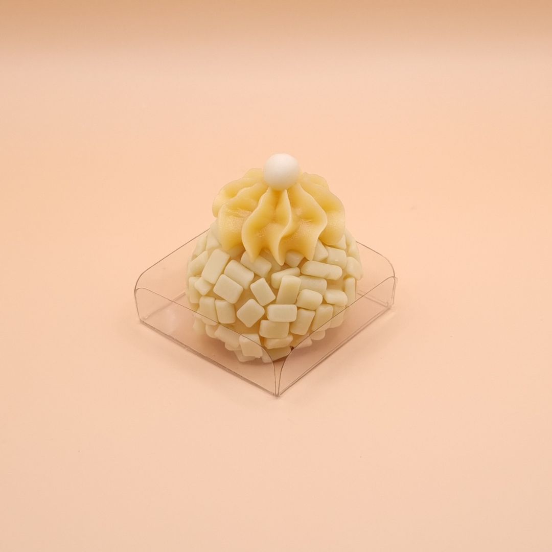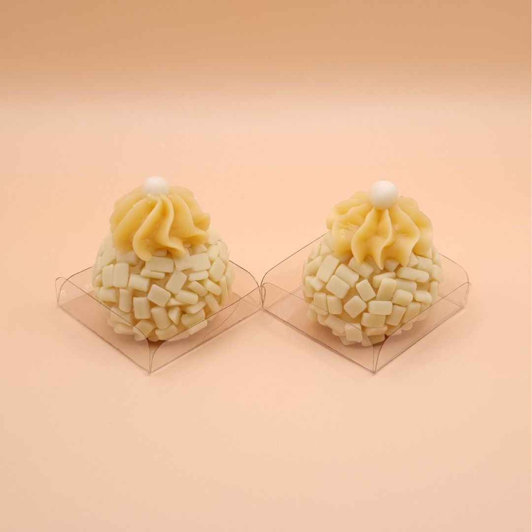 - Brigadeiro branco envolvido com granulado de chocolate nobre branco que derrete na boca. Finalizado com brigadeiro branco e uma gota de chocolate nobre branco.
