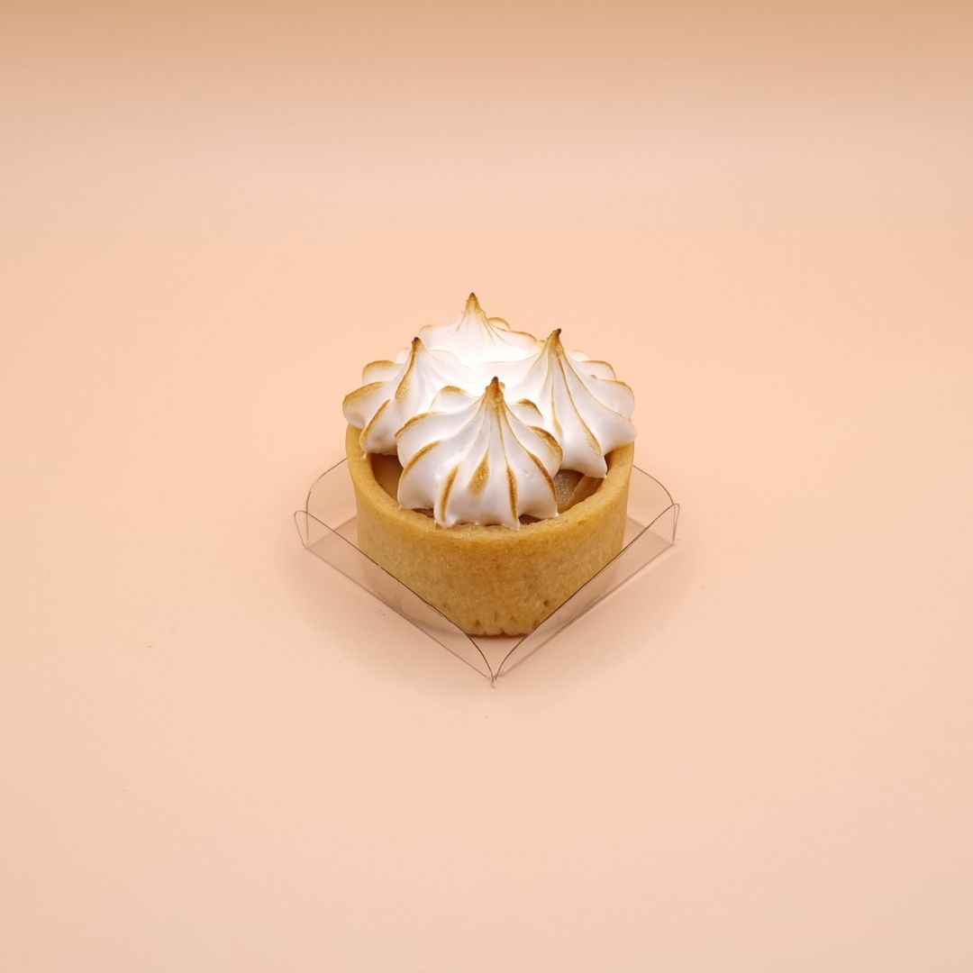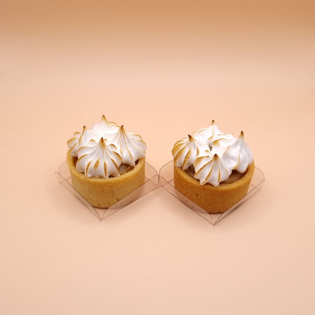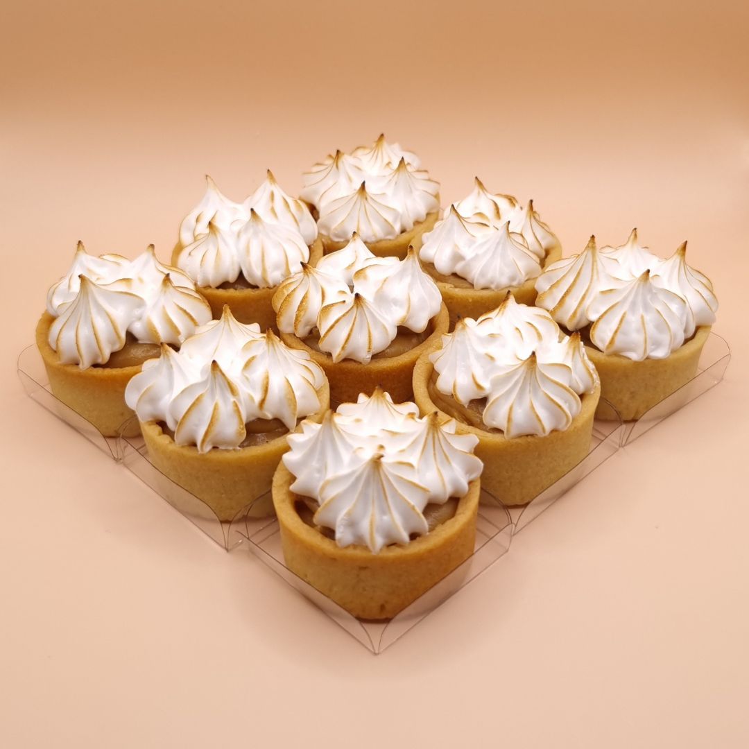 - Tartelete com massa crocante e levinha, selada com uma fina camada de chocolate nobre branco. Recheio de doce de leite, bananas desidratadas orgânicas e, por cima, merengue maçaricado.