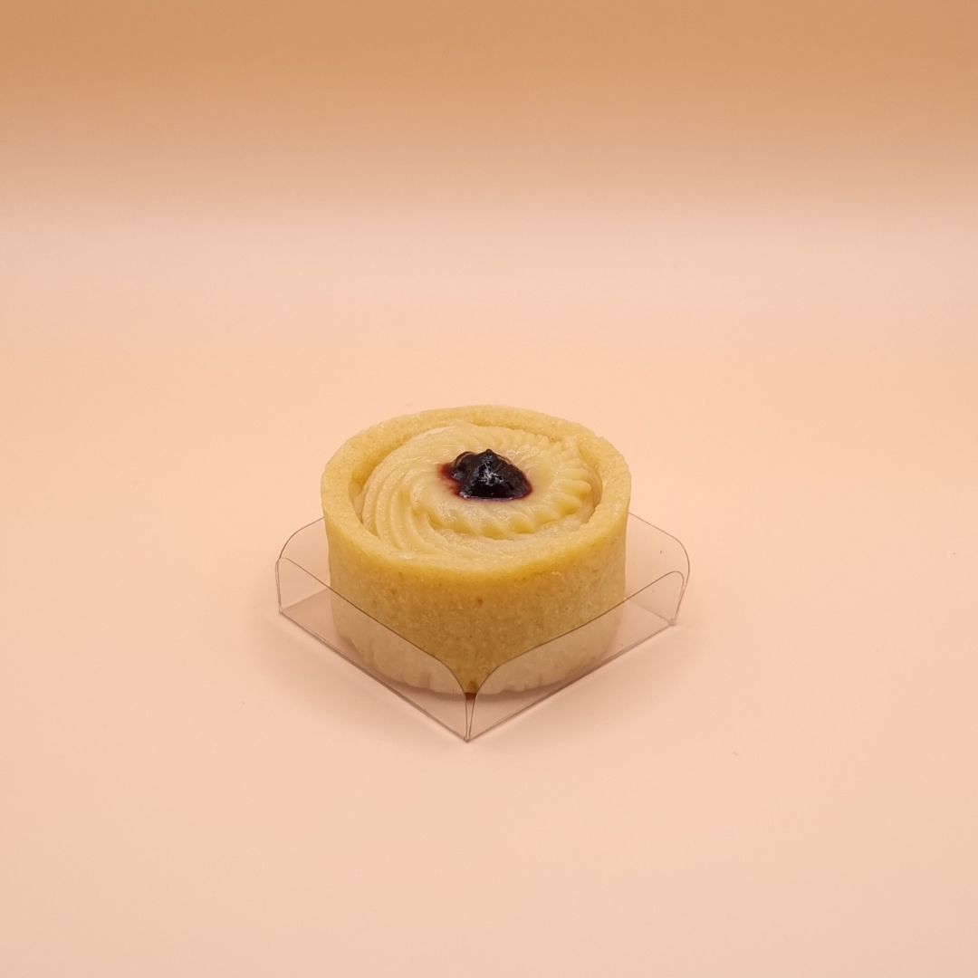 • Tartelete com massa crocante e levinha, selada com uma fina camada de chocolate nobre branco. Recheio cremoso de brigadeiro branco levinho com geleia de frutas vermelhas autoral AdriArt.